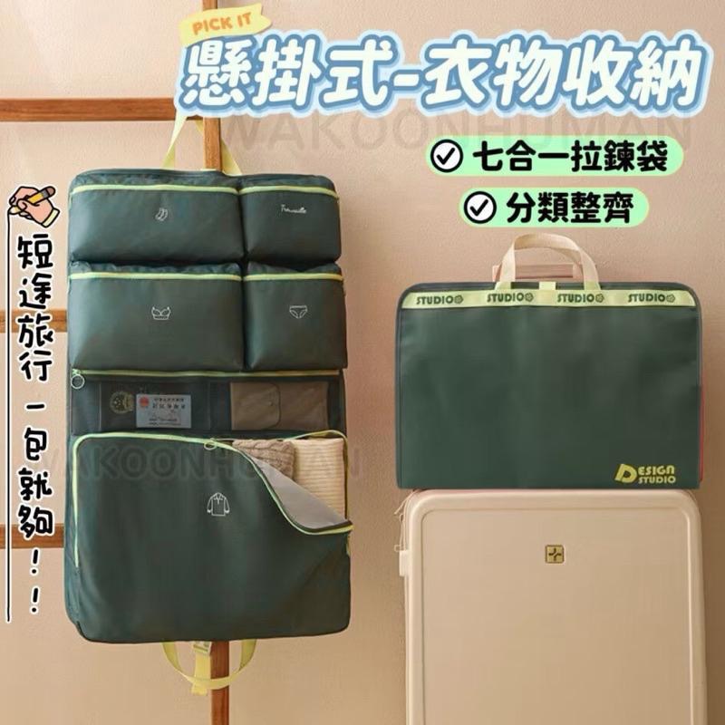 🛸台灣現貨 旅行七合一整理袋 懶人收納 懸掛式衣物收納包 短途旅行 多巴胺 衣物收納 旅行收納包 衣物分類 掛袋 旅行