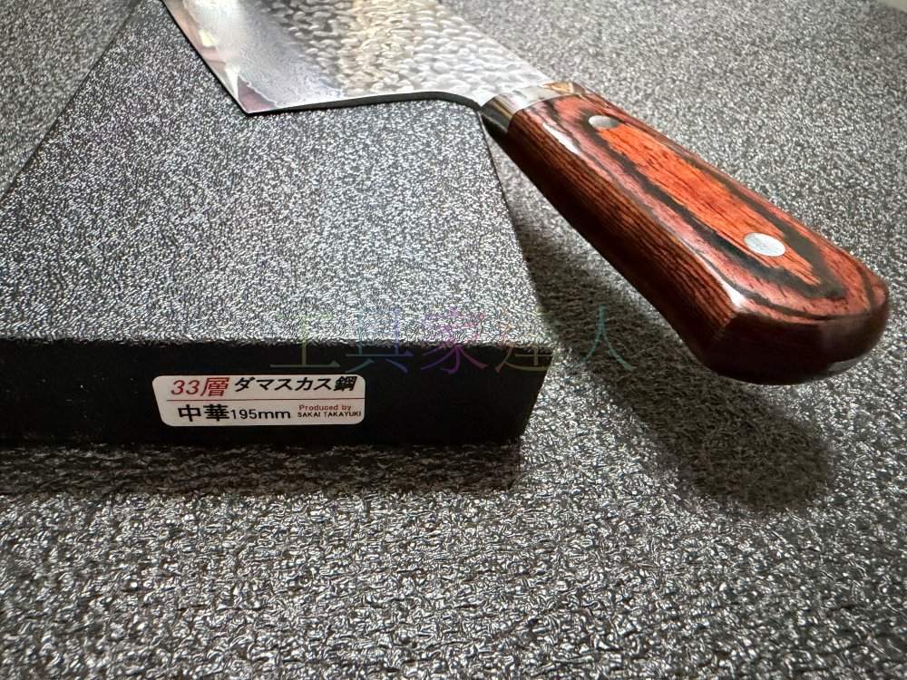 尺寸:刃長:19.5cm 刀寬:8.7cm 厚度:0.22cm 全長:31cm 重量:340g