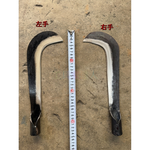 左手:直線刃長:18.5cm 勾尾刃長:6.5cm 厚度:0.4cm 重量:375g(±30g)