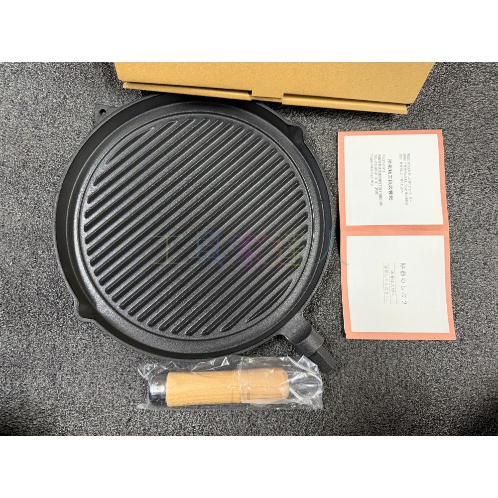 【日本製】池永鐵工 鑄鐵烤盤 26cm 木柄 (114486) IH爐適用 南部鐵器質感 煎牛排神器 燒肉盤 露營鍋具