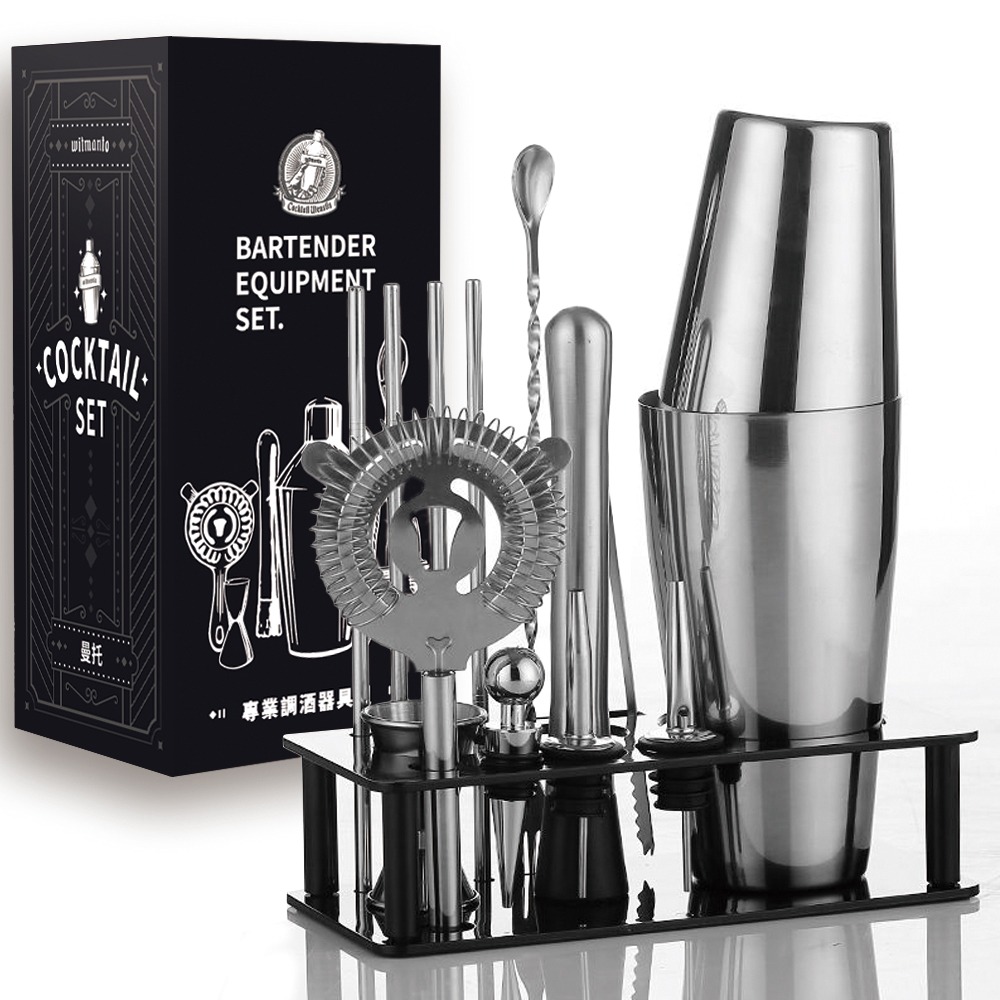 ※ 波士頓 x1、量杯15ml/30ml x1、酒嘴 x2、酒塞 x1、調酒棒 x1、不鏽鋼吸管 x4、搗冰錘 x1、冰塊夾 x1、濾冰器 x1、酒針 x2、黑色底座 x1 (新款底座前面三孔非圖片四孔)