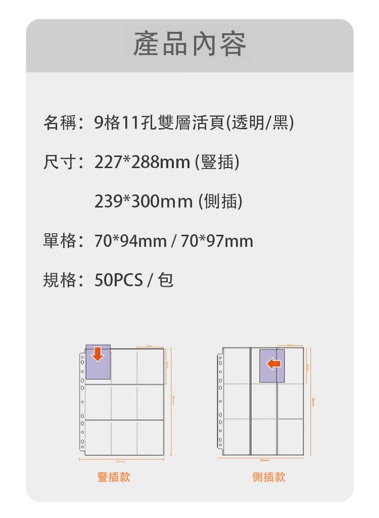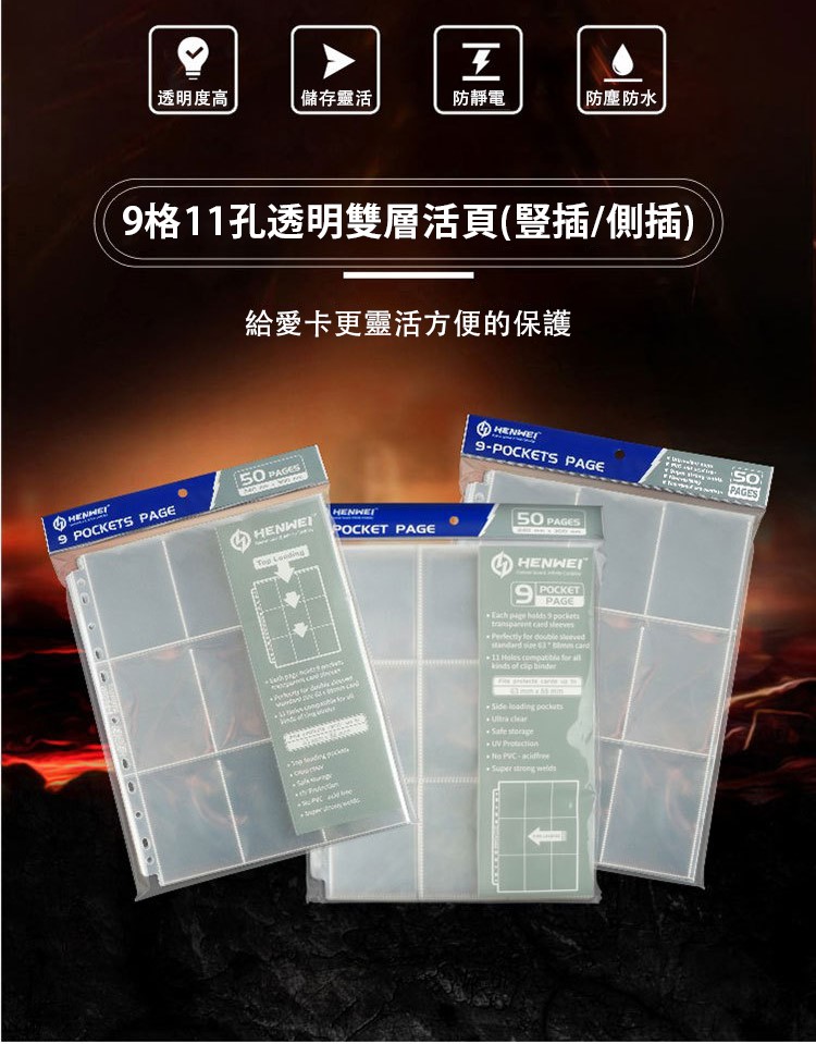 【鼠卡卡】Henwei 9格卡冊內頁 豎插 | 活頁 寶可夢 遊戲王 魔法風雲會 卡牌蒐集