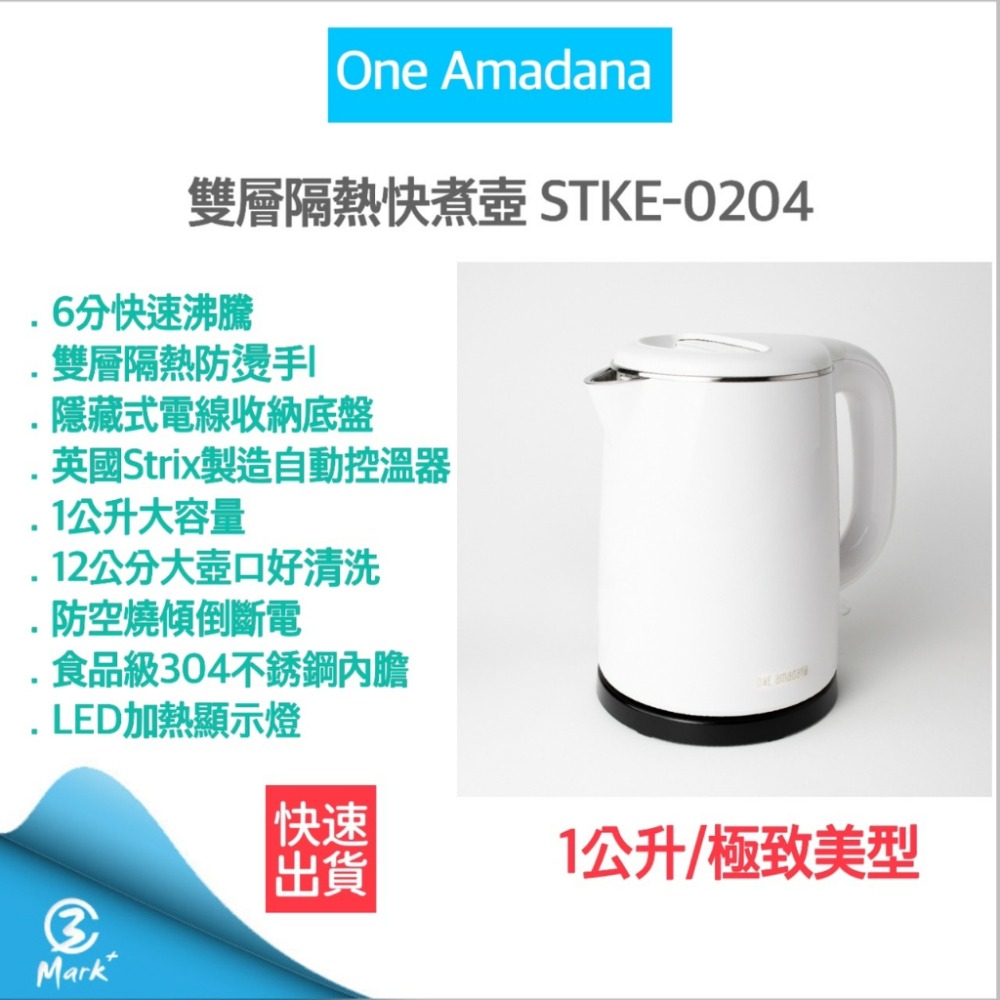 【快速出貨 附發票保固】ONE amadana STKE-0204 雙層隔熱快煮壺 熱水壺 電茶壺 快煮壺