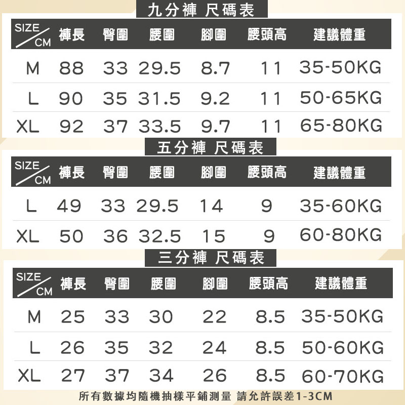 九分褲 M(35-50KG) L(50-65KG) XL(65-80KG)