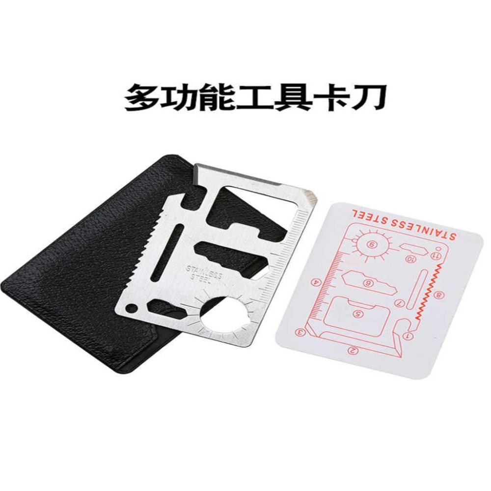 優質不銹鋼整體,做工精緻,正反面均光亮平整,決無毛邊,刀刃鋒利,鋼體堅固,產品有雙排交錯鋸齒功能。整塊高硬度不銹鋼一次成型,強度高,刃口鋒利。規格比信用卡略小,外帶黑色皮革保護套,能夠避免刃口傷及自身,並可放入錢夾隨身攜帶。