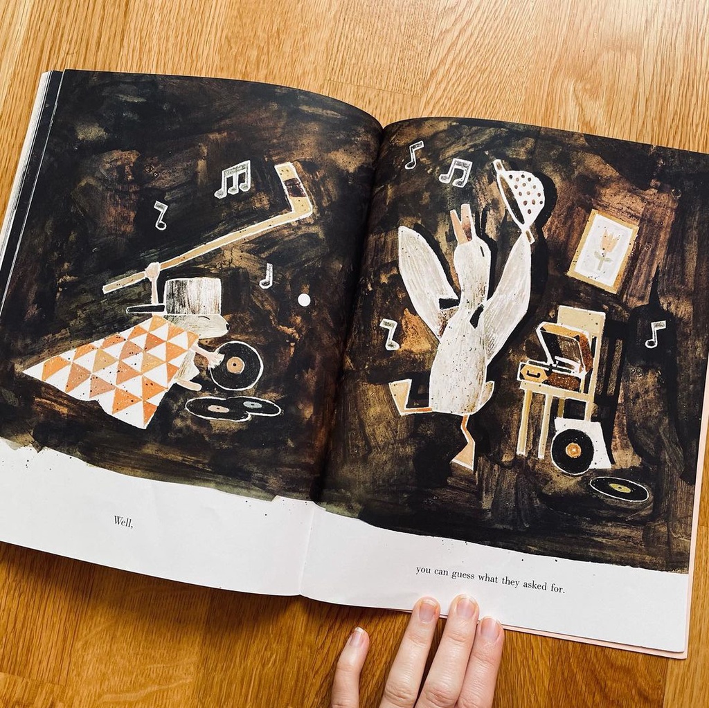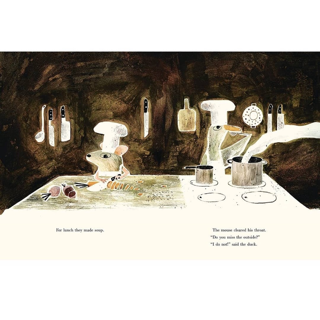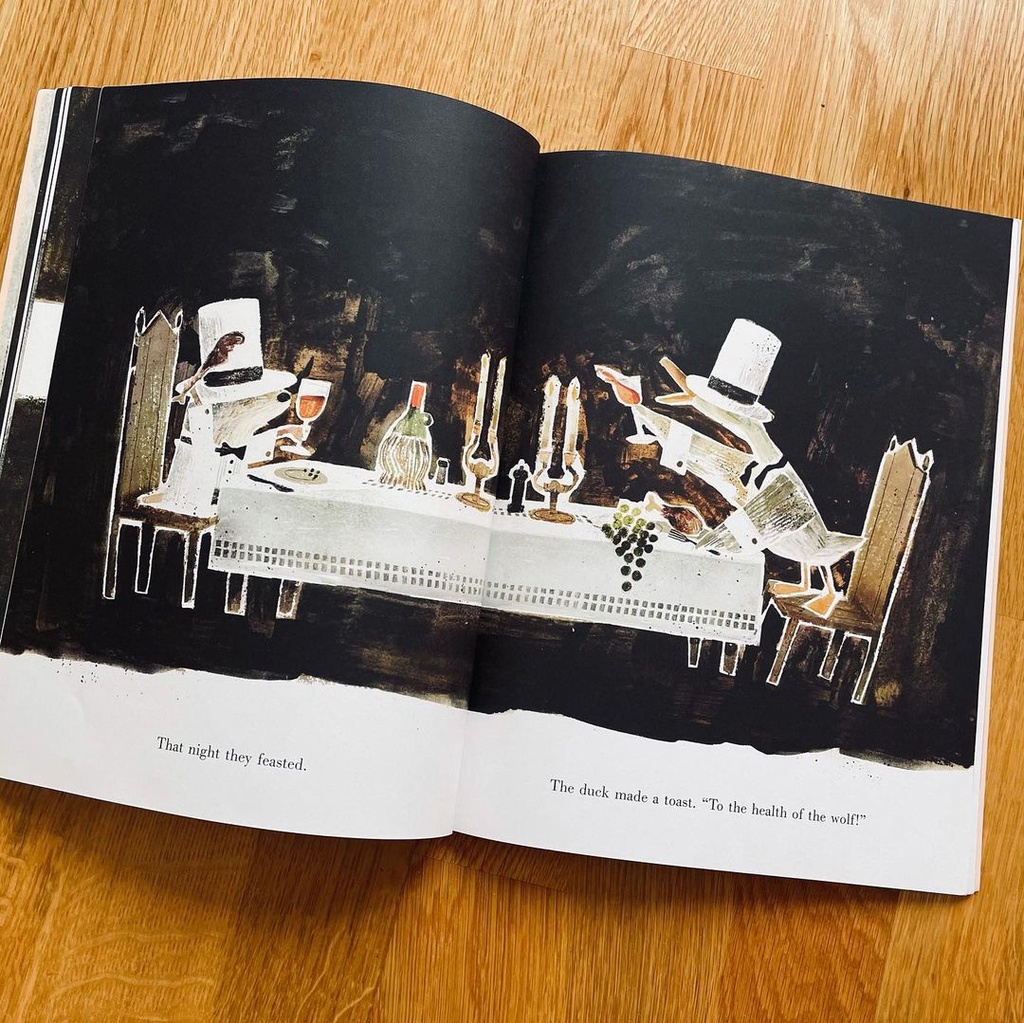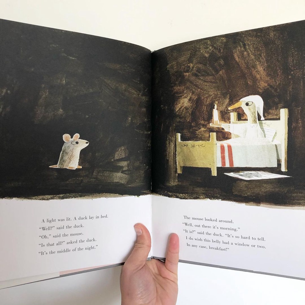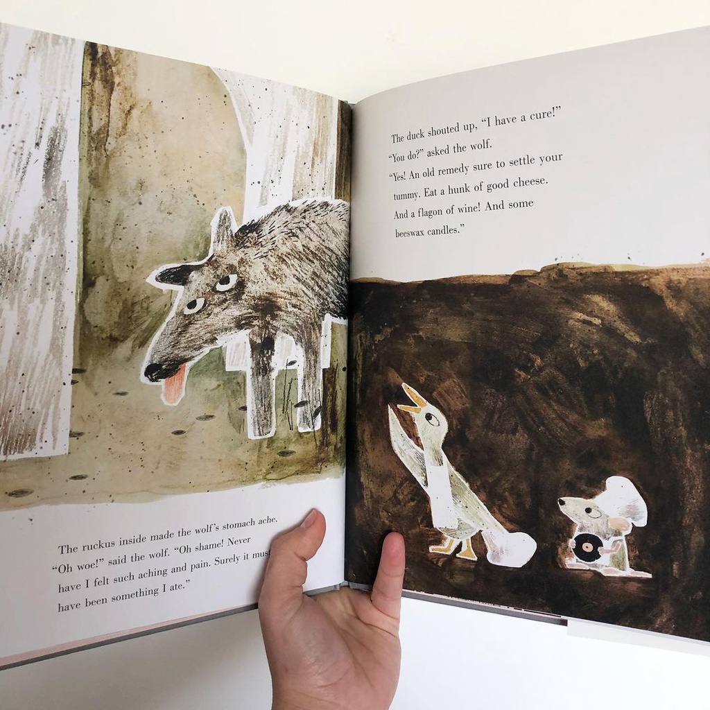 Early one morning a mouse met a wolf and was quickly gobbled up... When a woeful mouse is swallowed up by a wolf, he quickly learns he is not alone: a duck has already set up digs and, boy, has that duck got it figured out! Turns out it's pretty nice inside the belly of the beast - there's delicious food, elegant table settings and, best of all, dancing. And there's something more: no more fear of being eaten by a wolf! Life's not so bad, considering the alternatives. That is, until a hunter shows up... With a nod to traditional fables and a wink to the reader, the award-winning Mac Barnett and Jon Klassen of Sam and Dave Dig a Hole, Extra Yarn and Triangle offer a tale of cooperation and creative cuisine that is sure to go down easy.