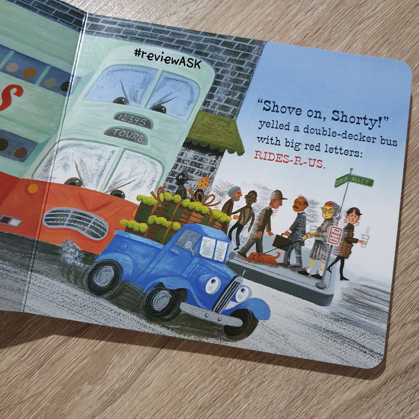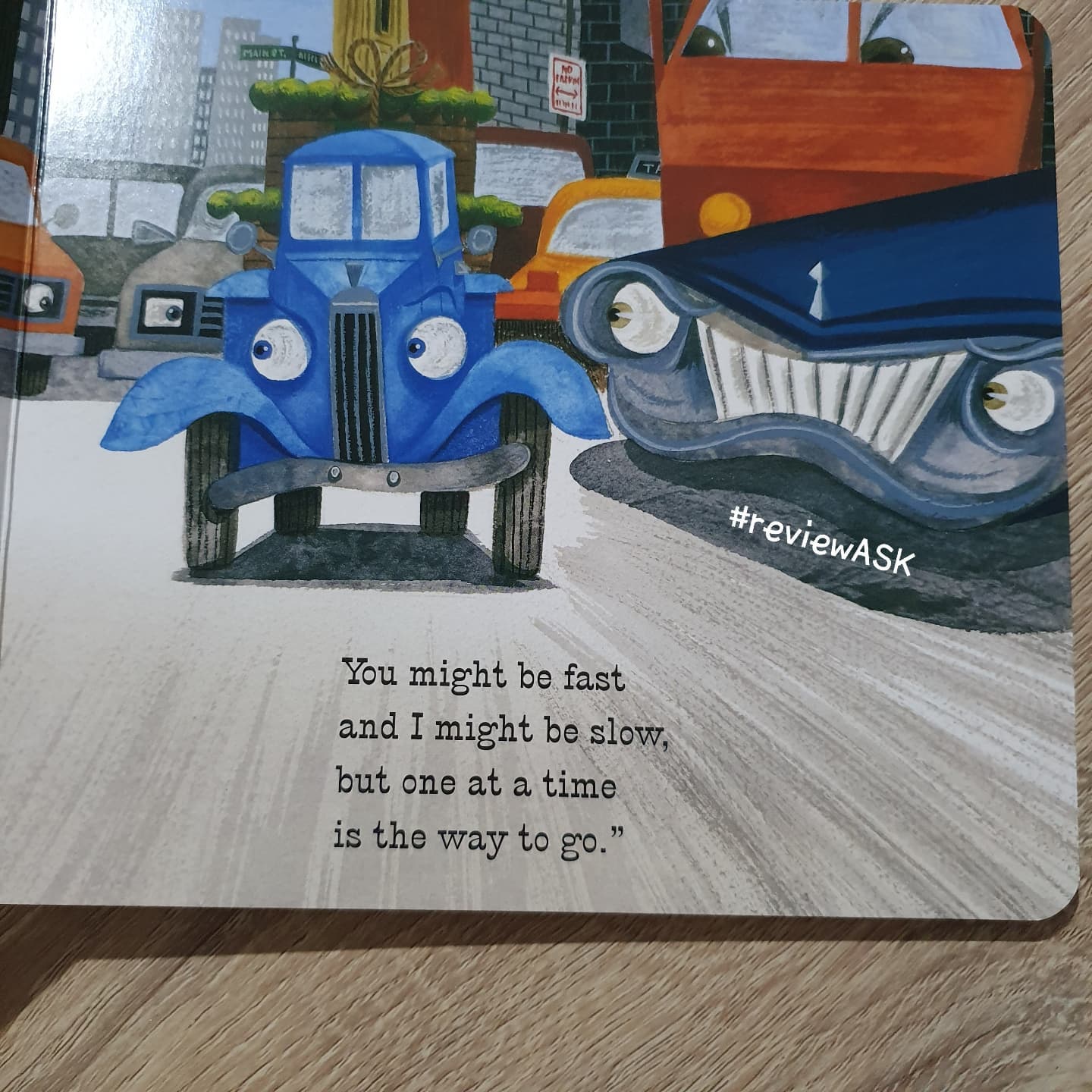 Zooom! Wooeeee . . . ! "Make way!" The big city sure is a speedy, noisy place for a country truck like Blue. Everywhere Blue looks, he sees buses, police cars, taxis, vans, a street sweeper, and even the mayor’s limousine. With everyone pushing to be first, soon there’s a giant traffic jam! But even a wrangle-tangle is no match for Little Blue Truck, who comes to the rescue in true Blue style.