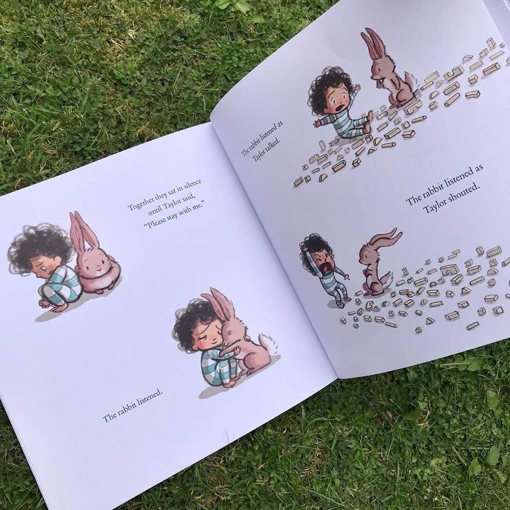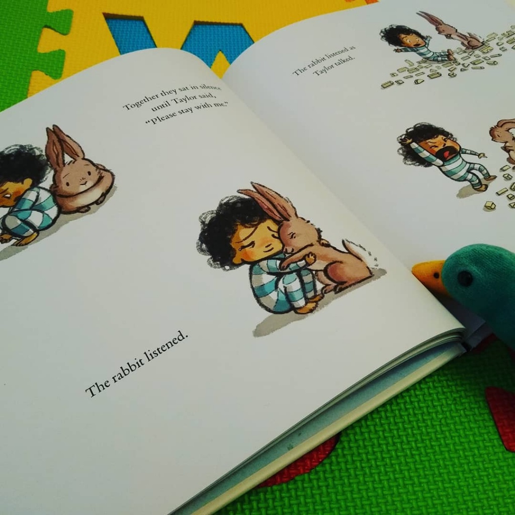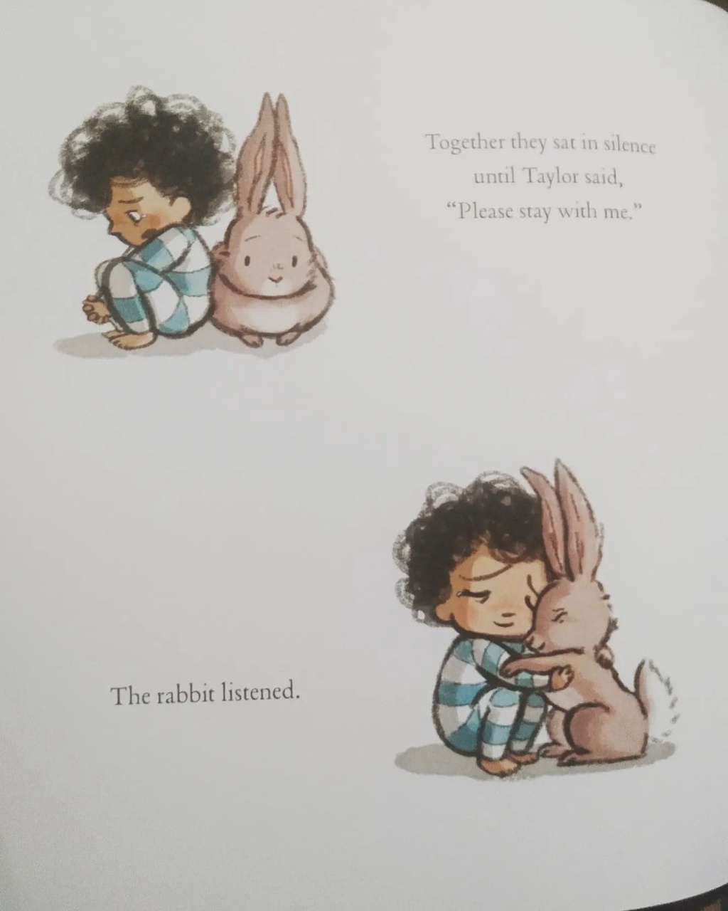 故事只是個簡單的事件,其中巧妙地利用了每個登場動物的形象,強調、勾勒出不論大人小孩都會經歷的難過情緒,但重點並不只是走過悲傷,在另一端再次鼓起勇氣,在故事中段,主角雖然看起來仍舊是泰勒,但默默地讀者會感受到的是…那隻兔子的重要性。