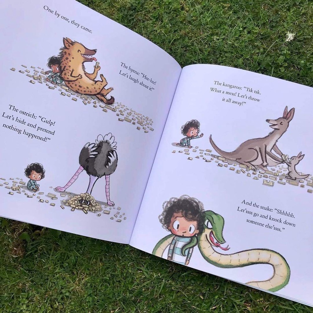 像所有小孩都做過的一樣,泰勒正在蓋一座大樓,他會很大、很完美,但突然間“碰”大樓垮了?!面對突如其來的驚嚇與難過,泰勒該如何是好呢?一個又一個的動物來到,試著帶領泰勒走出悲傷,會是哪一隻動物,能打開泰勒的心呢?