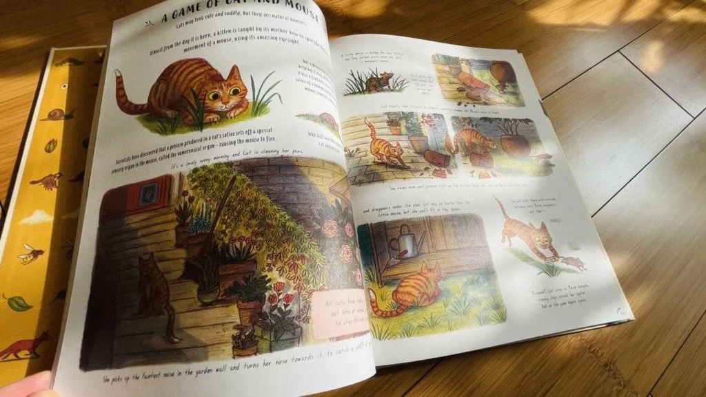 看看毛毛蟲如何蛻變成蝴蝶,看水珠從空中掉落,逐漸變成六角冰晶雪花的過程;看野兔如何掙脫狐狸,鴨媽媽教小鴨游泳;狐狸吃野莓,翠鳥潛入水底抓魚,和蜜蜂採蜜……等,共有五十種時間靜止、驚豔的大自然奇蹟,插圖風格柔和、溫暖,邀您欣賞我們周圍的小奇蹟~