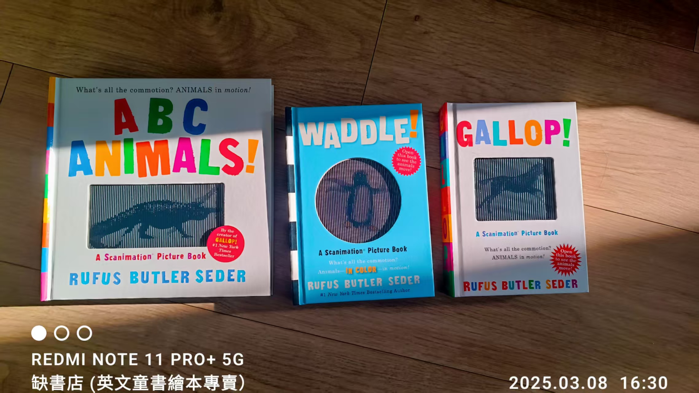 《Waddle》是2007年紐約時報排行榜童書銷售第一名『 Scanimation』動畫書系列的第三集,自第一集《Gallop》、第二集《Swing!》以來,不但風靡了童書界,也是圖畫書的最新創舉!