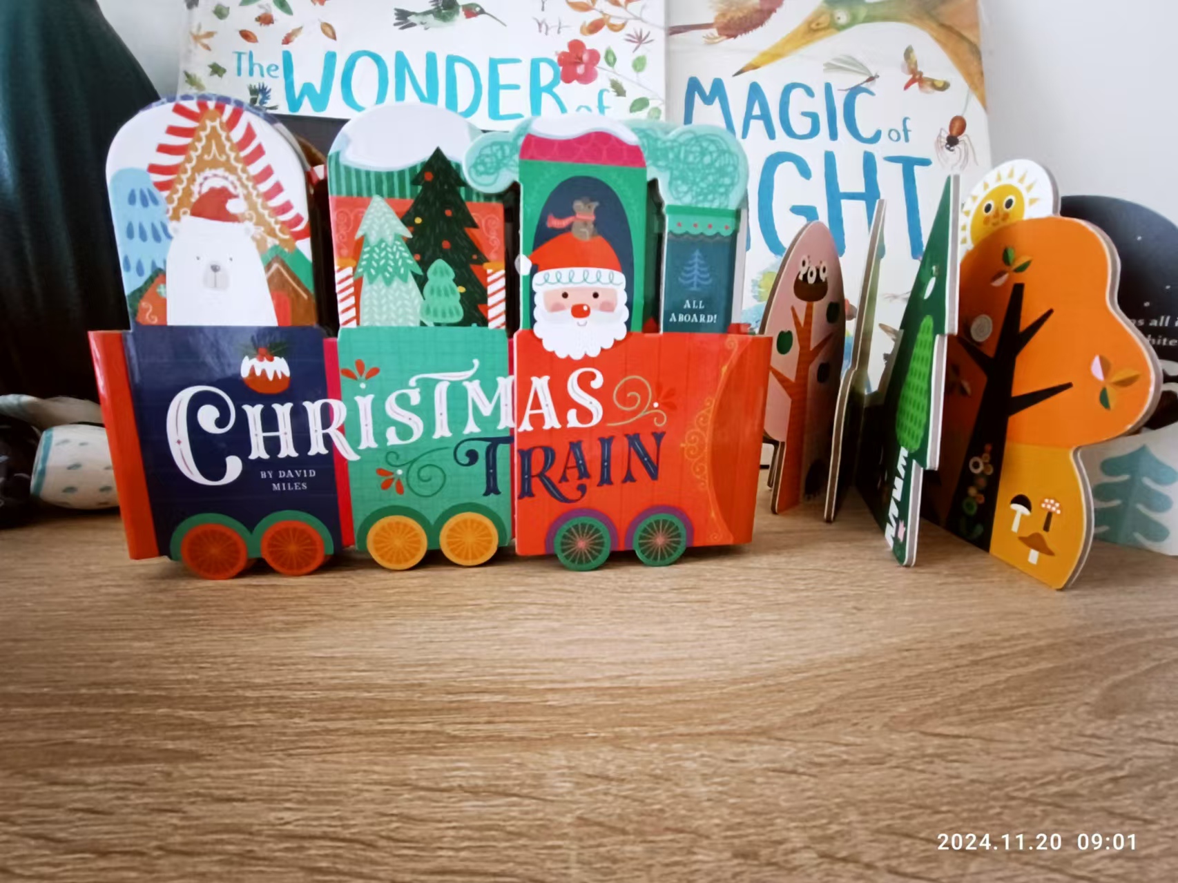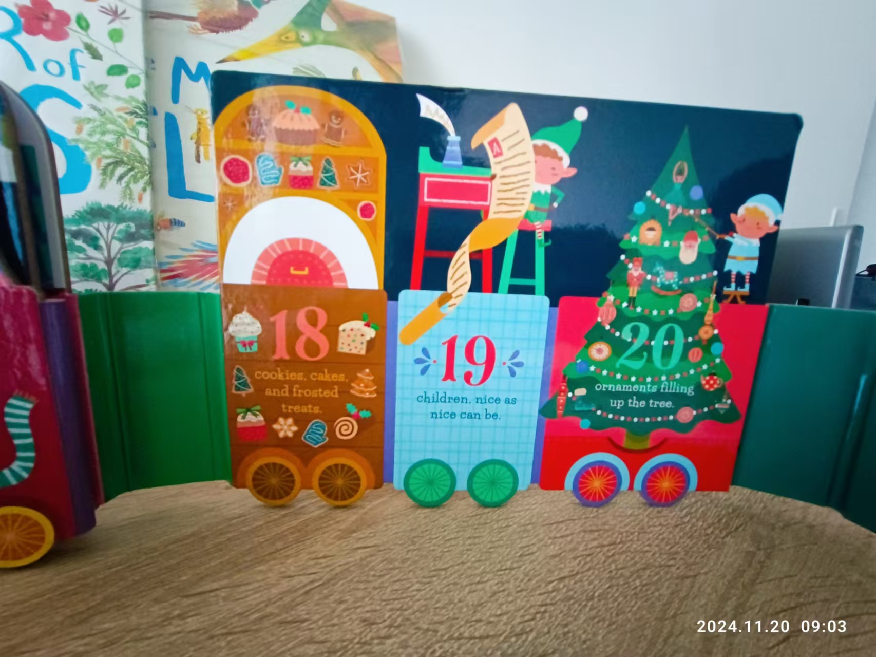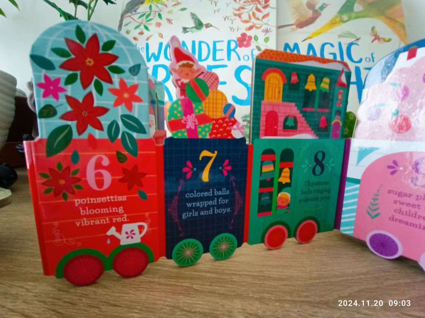 塑封英文硬頁操作書Christmas Train 長142公分聖誕火車+1-20計數色彩明亮造型插畫可愛🍀缺書店