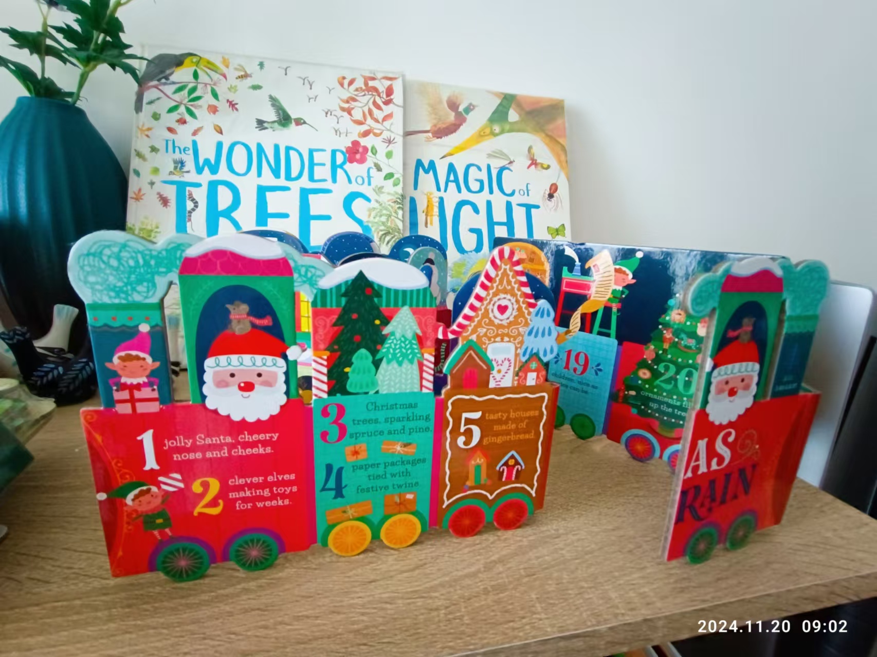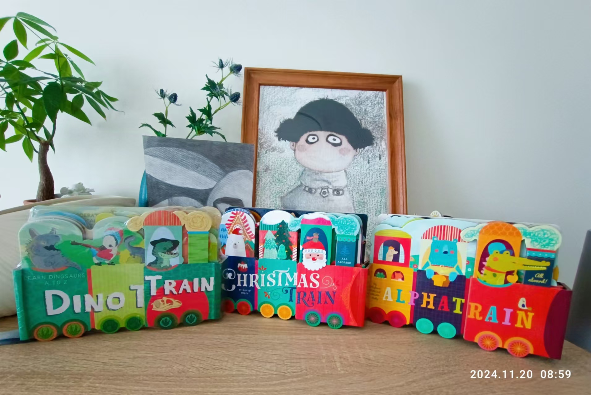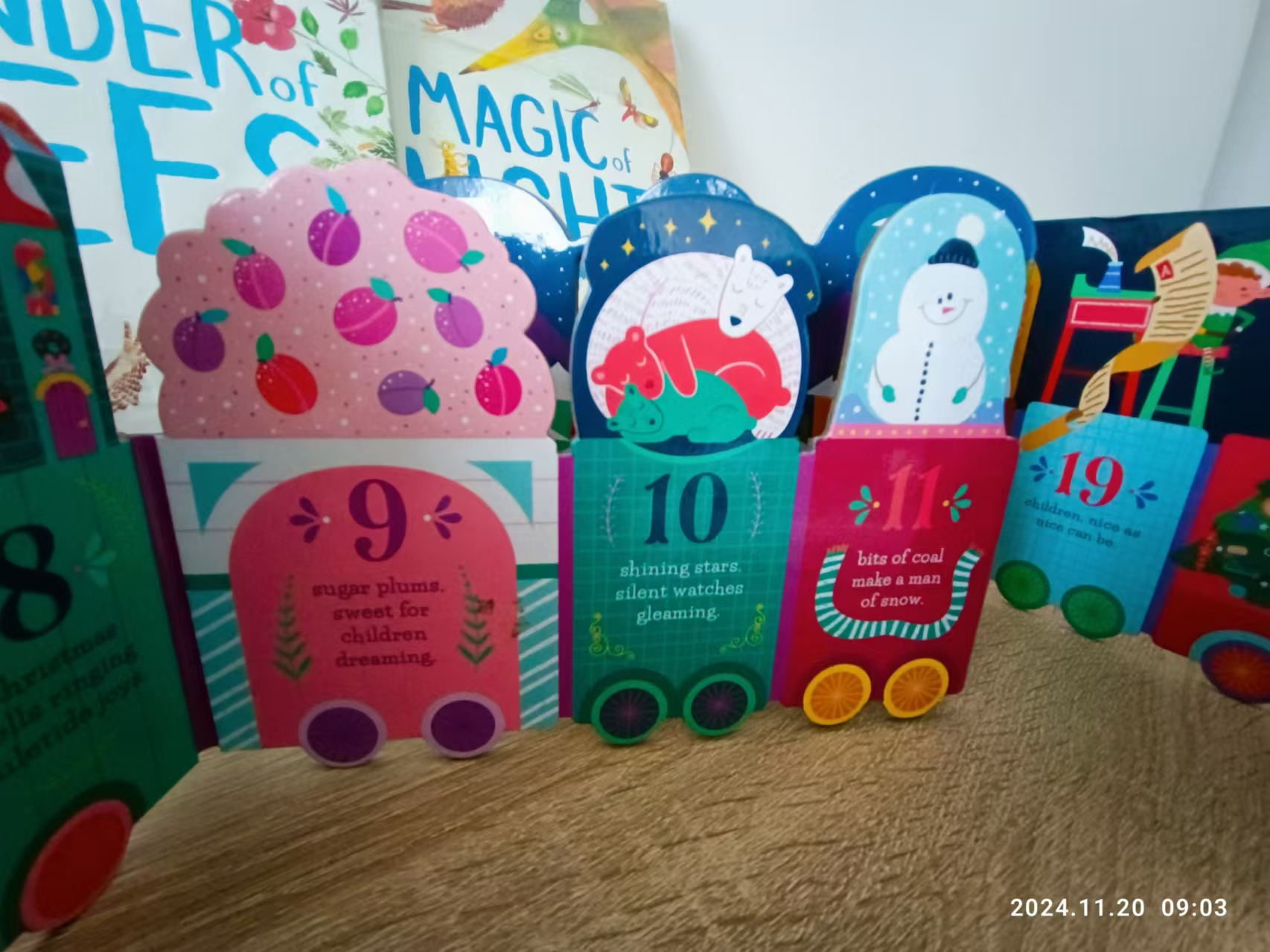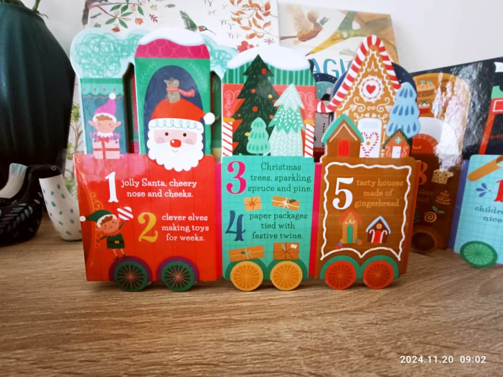 塑封英文硬頁操作書Christmas Train 長142公分聖誕火車+1-20計數色彩明亮造型插畫可愛🍀缺書店