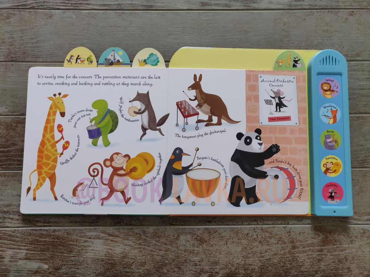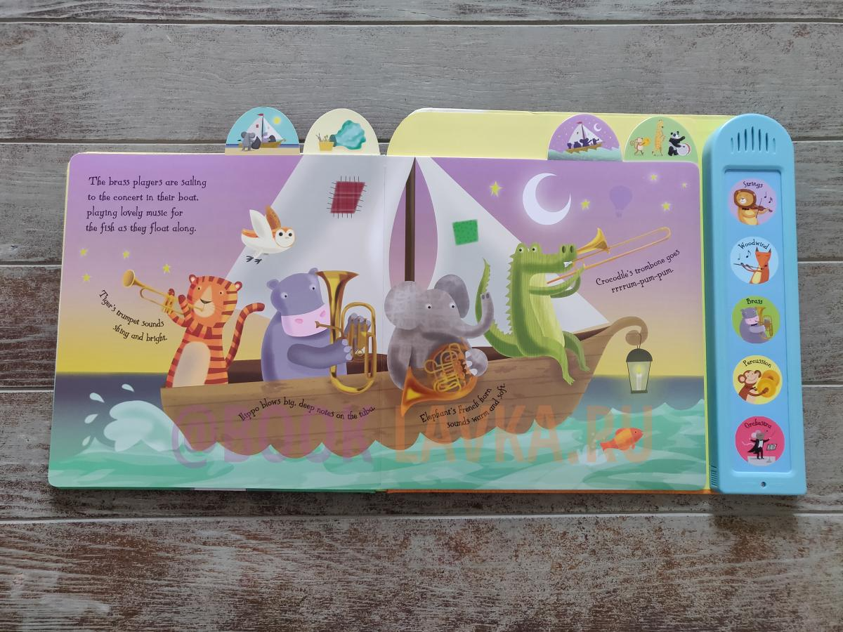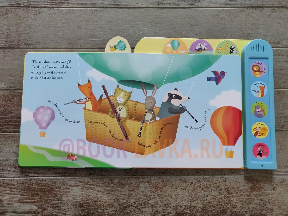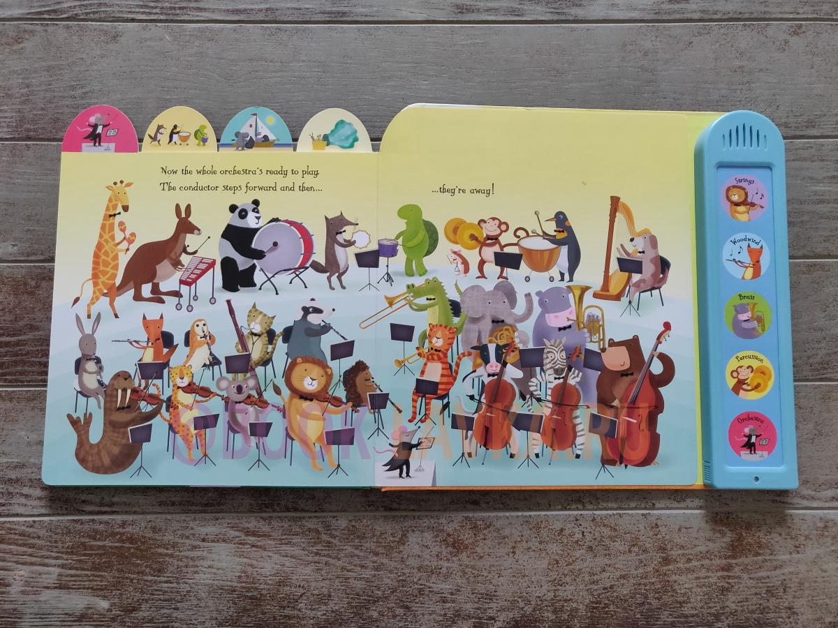 Listen to the animal orchestra getting ready for a concert... from gentle woodwind instruments to crashing drums. Each section of the orchestra and can be heard by pressing the sound buttons. Press the final button to hear the entire orchestra playing together. A delightful introduction to the orchestra for young children. Specially written music and superb quality sound chips make this book a total delight.