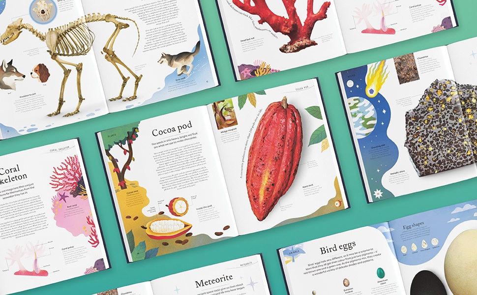 Learn how huge whales eat tiny animals from looking at their bristly teeth, why butterflies shine and glitter in the sunlight from seeing their minute wing scales, how plants transport water and food around from examining a delicate leaf skeleton, and what makes every snowflake unique from admiring their miniature, branching crystals of ice. Birds' eggs, a lump of coal, a glass sponge skeleton, a cacao pod, a mermaid's purse, a fossil human footprint, an ear of corn, a pine cone, an owl pellet, and a chrysalis---all tell a story. Arranged by animal, vegetable, or mineral, objects are shown with truly stunning photography and colorful illustrations to help explain the science behind them.