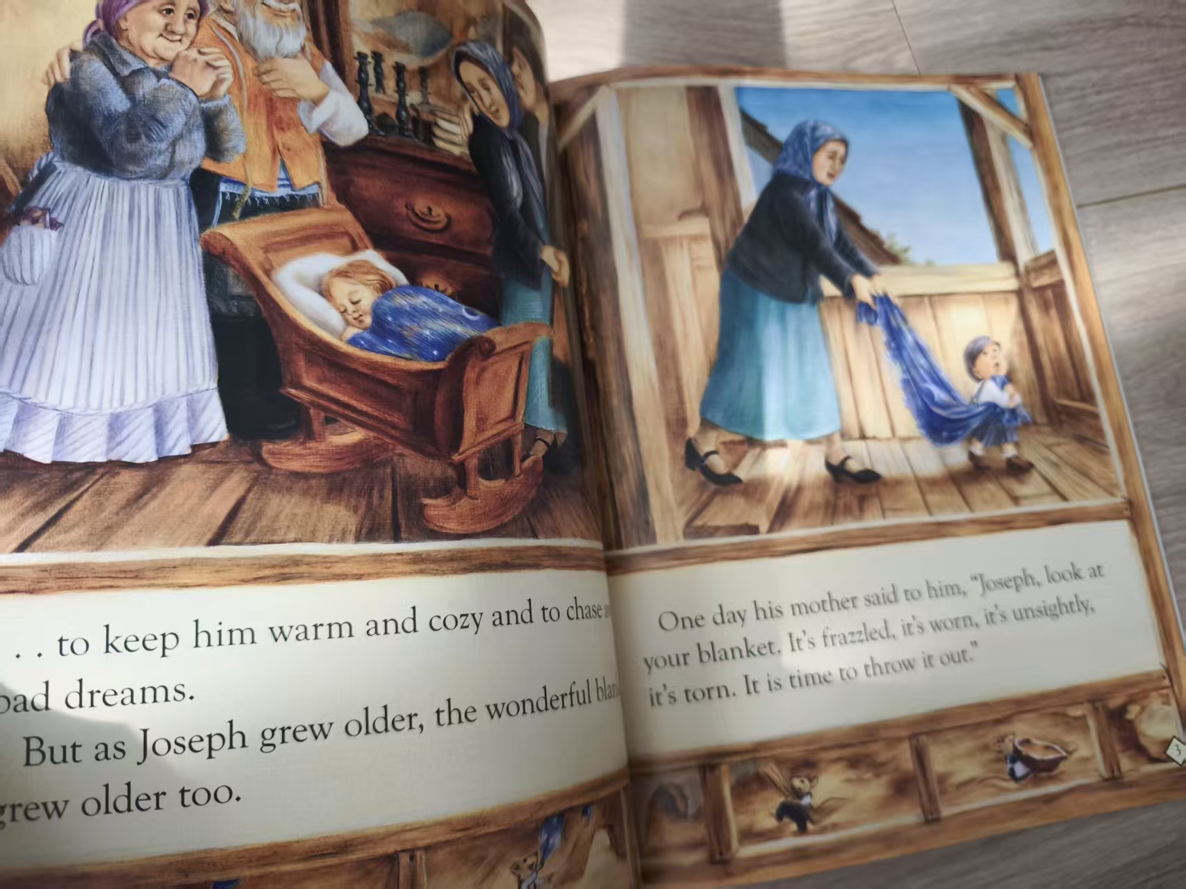 故事描述小男孩 Joseph 的小毯子隨著成長逐漸變小,但在爺爺巧手改造下,一次次變成外套、背心、領帶……即使最後什麼都不剩,卻留下最珍貴的回憶與故事。