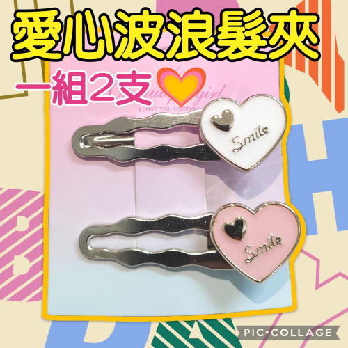 📌愛心波浪髮夾【2支裝//白跟粉各1支】