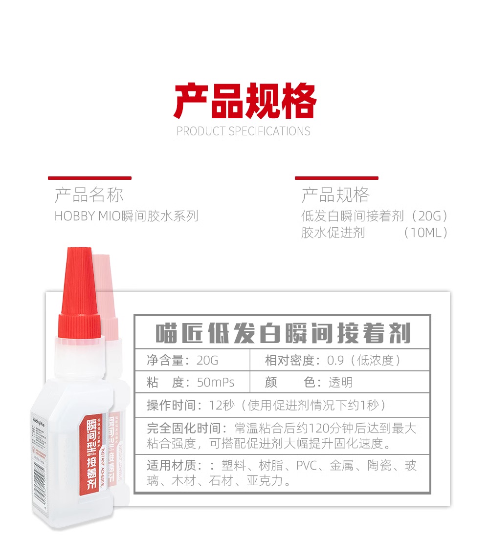 (Pandainn) 喵匠 hobbymio 瞬間膠 模型用膠水 高硬度 低白化