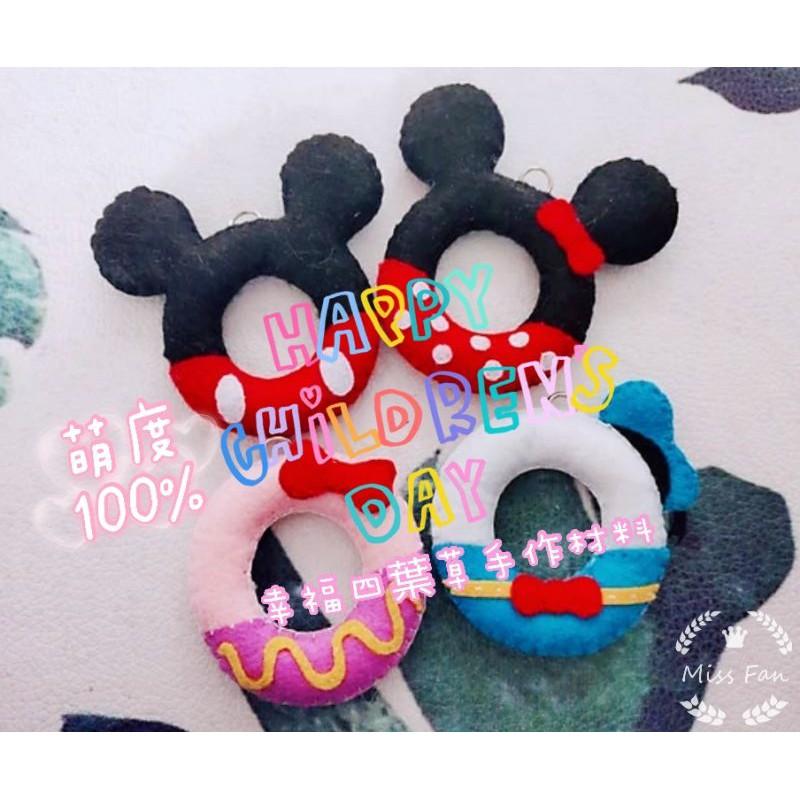 🇹🇼現貨 親手縫更有愛《🍀幸福四葉草🍀》《一組2入米奇米妮 唐老鴨 甜甜圈掛飾》diy材料包/不織布免裁剪/批發/文創