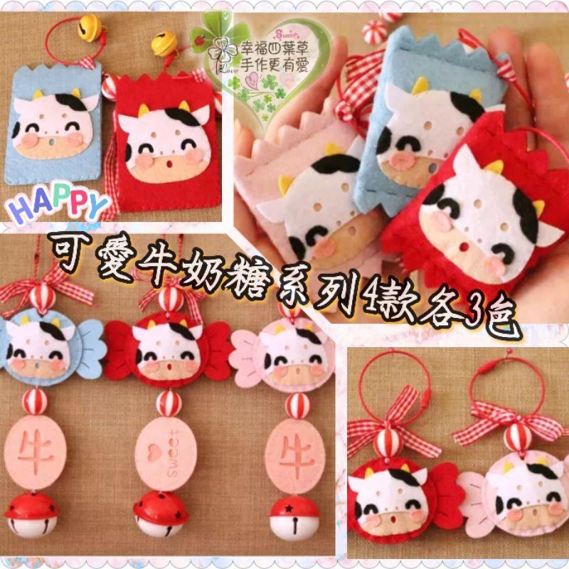 🇹🇼現貨手作更有愛《🍀幸福四葉草🍀》《可愛牛奶糖4款》不織布材料包/免裁剪/diy材料包/親子手作/卡套/車掛/鑰匙圈