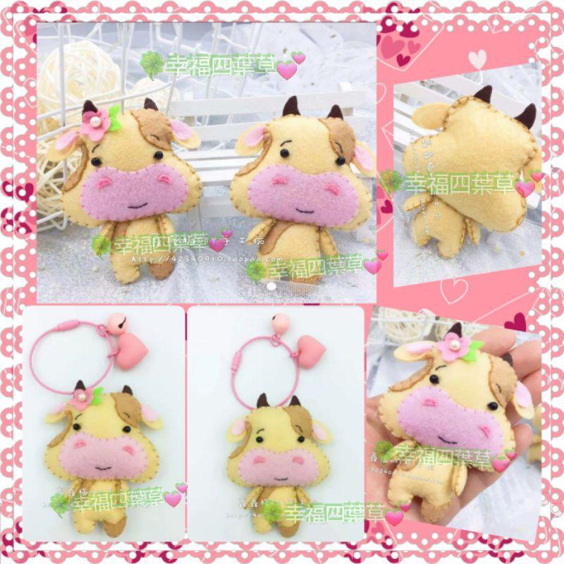 【Diy親手縫更有愛♡速寄】《萌牛鑰匙圈掛飾9*7 鑰匙圈顏色隨機》不織布材料包/免裁剪/批發/文創/孕期手作/親子手作