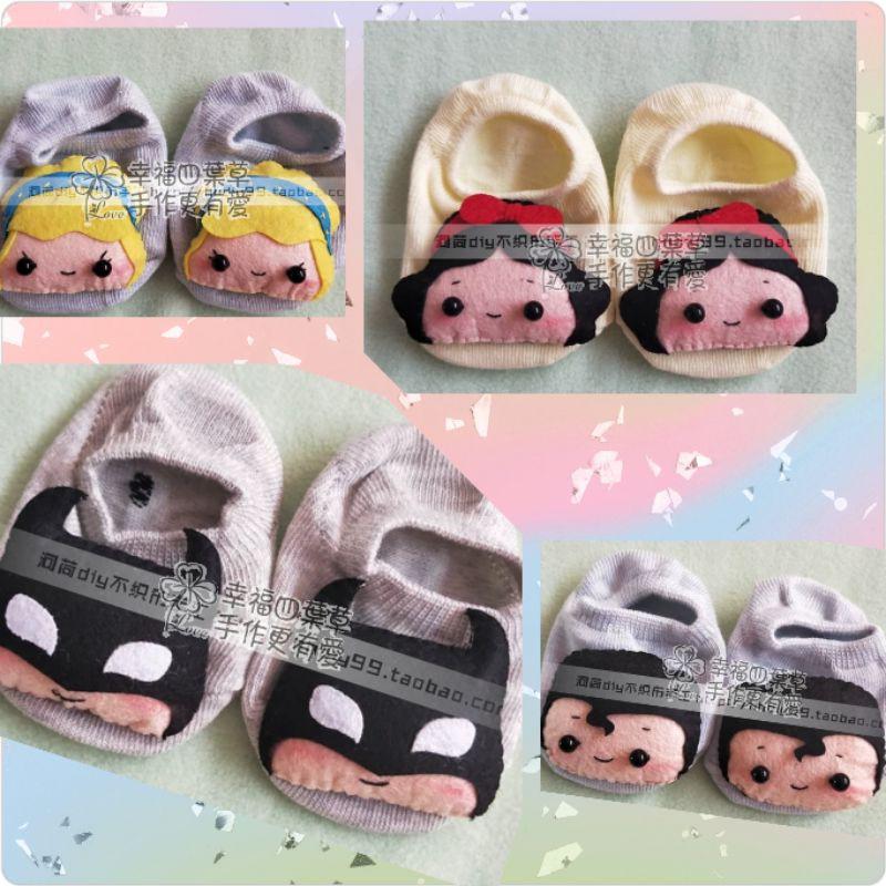 🇹🇼現貨 親手縫更有愛【🍀幸福四葉草🍀《0~1歲純棉立體手工嬰兒襪》白雪公主蝙蝠俠超人睡美人diy不織布免裁剪/孕期手作