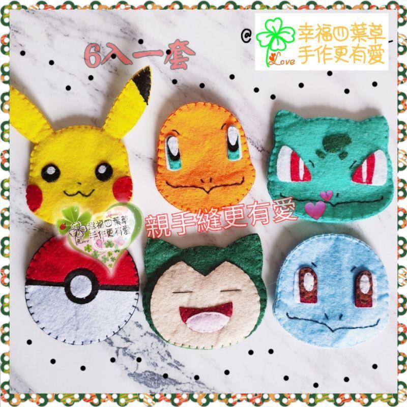 🇹🇼 現貨 親手更有愛《🍀幸福四葉草🍀》可免縫【6入 寶可夢皮卡丘神奇寶貝磁鐵書籤】diy材料包/免裁剪/親子手作