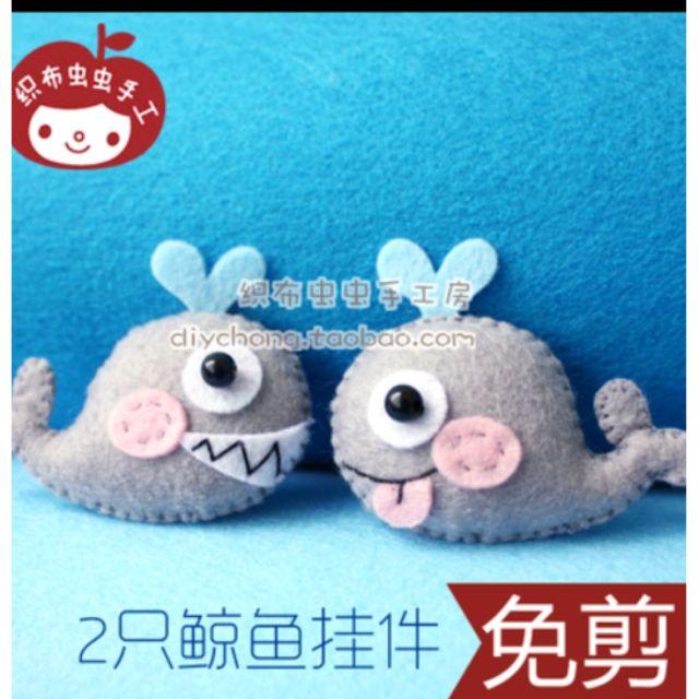 【Diy親手縫更有愛♡現貨】《鯨魚情侶掛飾,一組2入 6*5》不織布材料包/免裁剪/批發/文創/療癒/暫離手機/親子手作