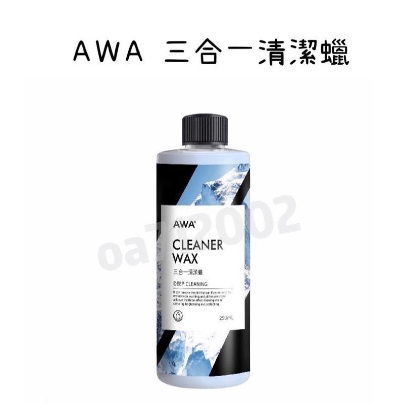 品名:AWA三合一清潔蠟 容量:250ml 成份:Water、Solvent、Synthetic Wax、Silicone、Kaolinite、Surfactant 保存期限:3年