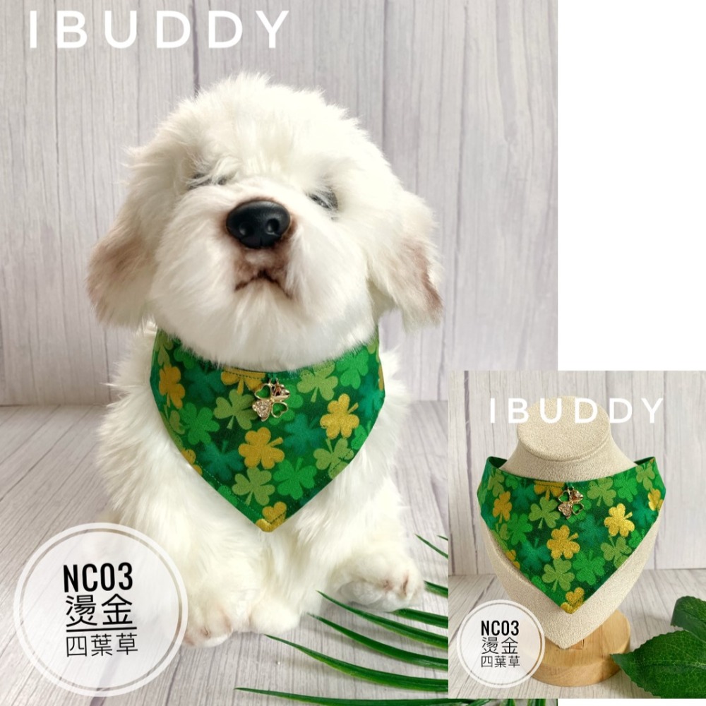 寵物領巾 狗領巾 貓領巾 寵物項圈 寵物口水巾 【KC36NC03】台灣現貨 iBuddy燙金四葉草口水巾