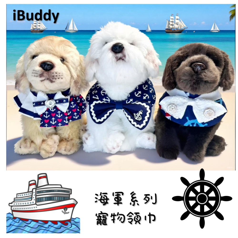 寵物領巾 寵物口水巾 狗領巾 貓領巾 海軍系列 海軍領巾 水手領巾 航海 海軍 手工製作【KC36ND】iBuddy