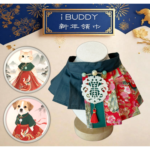 寵物領巾 狗領巾 貓領巾 新年 過年春節 拜年 馬面裙風格 寵物項圈 寵物口水【KC36ND95】iBuddy
