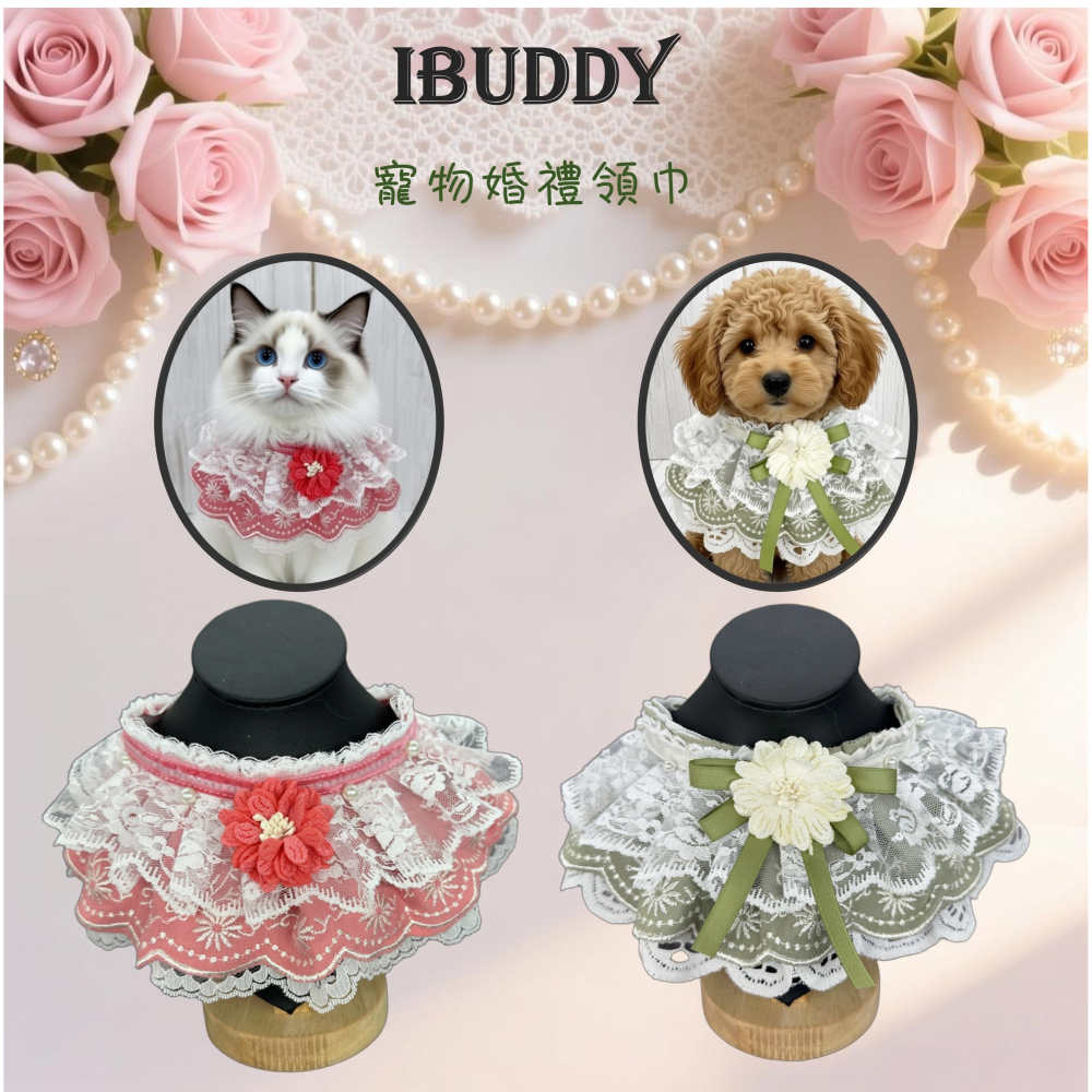 寵物婚禮領巾 狗領巾 寵物西裝婚紗 西服蕾絲領巾 結婚 擺拍 外拍 白紗 婚紗照 婚禮【KC36WM】iBuddy
