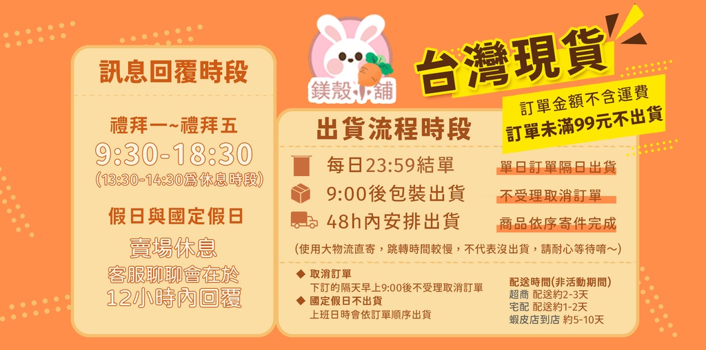 ✔️為了避免捕貨時被系統取消訂單,所以系統出貨時間設定10~20日,通常實際出貨時間為1日內,請放心購買。