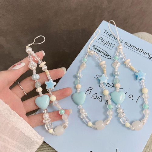 火星兔★吊飾 手機繩 手機吊飾 淑女款淺色 百搭手機掛鍊 diy手工淺藍珠珠手鍊 手機掛繩 手機鍊 串珠 韓國 手機鍊條