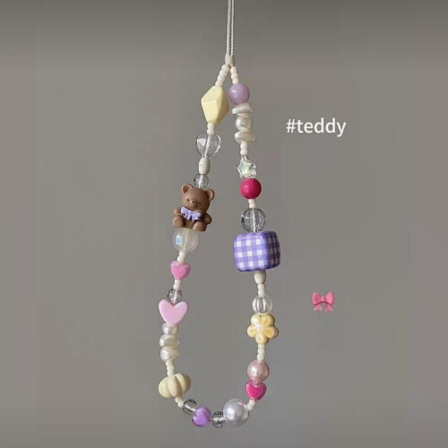 火星兔★吊飾 手機繩 小熊串珠手機鏈可愛小衆原創設計少女心粉紫色格子奶黃夏日色彩 掛件 少女心 送禮