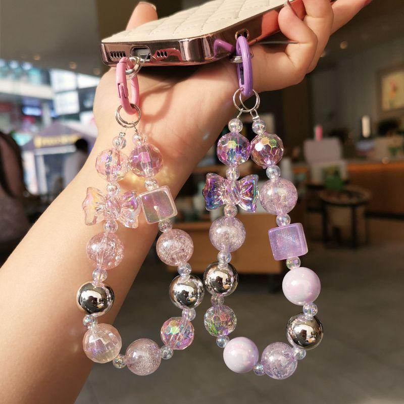 火星兔★吊飾 手機繩 手機吊飾 手機掛繩 短款閃粉方塊蝴蝶結 手機掛繩 手機鍊 串珠 韓國 手機鍊條
