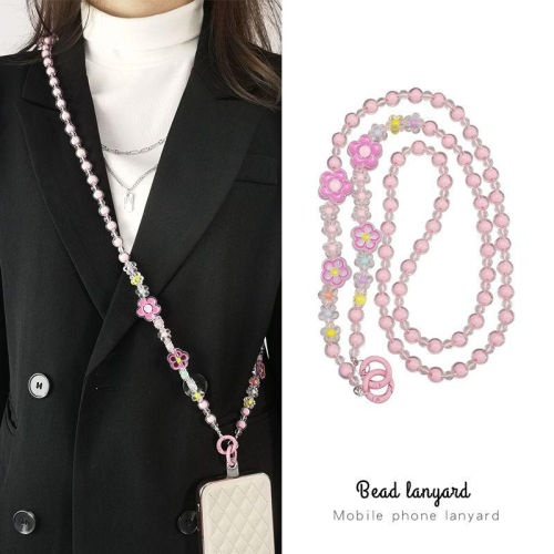 商品編號:P0084606525681 原始貨號:449013446578_斜挎款【粉色】圆珠串小花朵挂绳+微透夹片