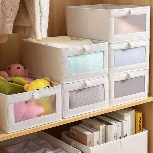 20L 可視窗厚磅棉麻折疊收納盒
