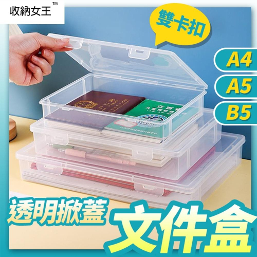 隔日出貨 A4透明文件盒 加厚收納盒 A5 B5文具盒 考卷收納 紙張收納 收據發票收納盒 收納女王 GAC002
