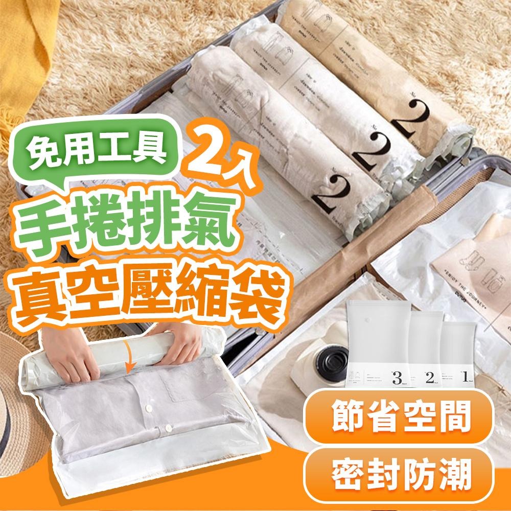 隔日出貨 2入 手捲壓縮袋 旅行壓縮袋 手卷真空壓縮袋 防水袋 寢具置物袋 免工具壓縮 收納女王 GAB401