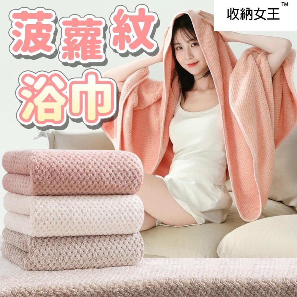 隔日出貨 高級菠蘿紋極細纖維浴巾 大浴巾 浴巾衣 乾髮帽 浴巾加大 擦髮巾 收納女王 JAA629