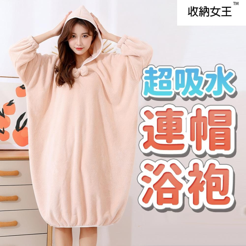 隔日出貨 加厚極細連帽吸水浴袍 睡袍 斗篷睡衣 浴衣 珊瑚絨睡袍 浴袍女收納女王 JAA630