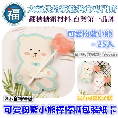 【可愛 粉藍 小熊 棒棒糖 包裝 紙卡 - 25入】星空DIY星球糖珊瑚糖愛素糖翻糖霜餅乾威化糯米紙棍打洞器珠光粉
