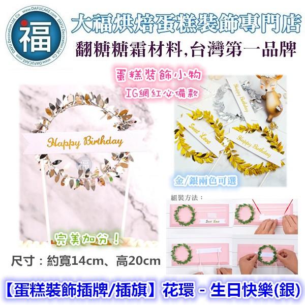 IG網紅款【蛋糕裝飾插牌/插旗】【花環 - 生日快樂 - 銀色】適用翻糖甜點桌婚禮小物杯子吸管裝飾拍照下午茶惠爾通蛋白粉