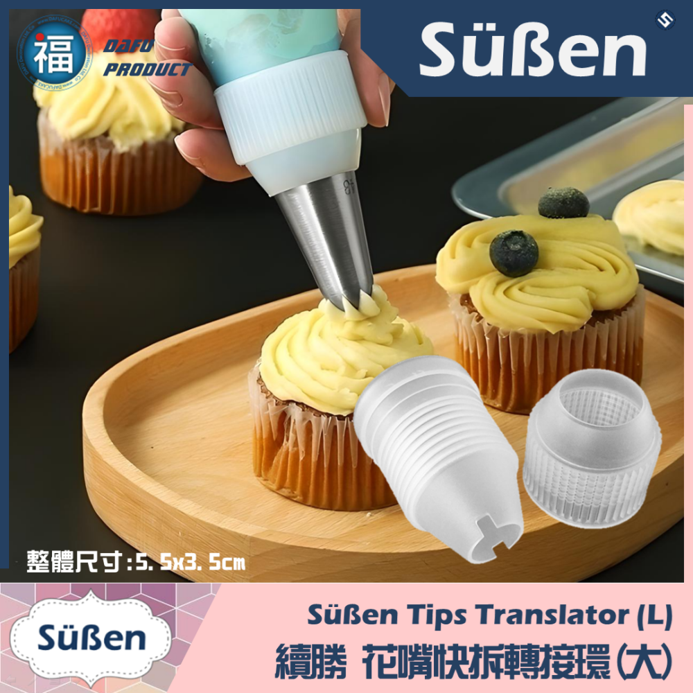 【商品名稱】 花嘴環、花嘴轉換器 (大號) 【商品規格】 上寬: 直徑 1.7cm 下寬: 直徑 3.5cm 高度: 5.5cm 材質:塑料 【保存期限】 無保存期限 (除人為因素外之損壞)