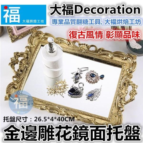【金邊 雕花 鏡面 托盤】 復古風參考鏡子盤鏡面盤英式下午茶三層架下午茶盤點心架蛋糕架婚禮布置翻糖惠爾通蛋白粉色膏
