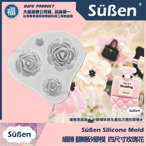 矽膠模【四尺寸玫瑰花】惠爾通wilton蛋白粉泰勒粉色粉色膏翻糖蛋糕糖霜餅乾食用色素筆珠光粉餅乾模Sugarflair