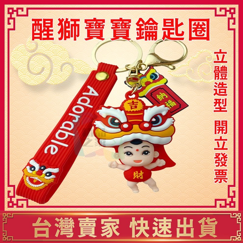 【台灣出貨】醒獅寶寶鑰匙扣 醒獅鑰匙圈 廣東獅鑰匙圈 舞獅男孩鑰匙圈 卡通鑰匙圈 包包掛飾 書包吊飾 新年禮品