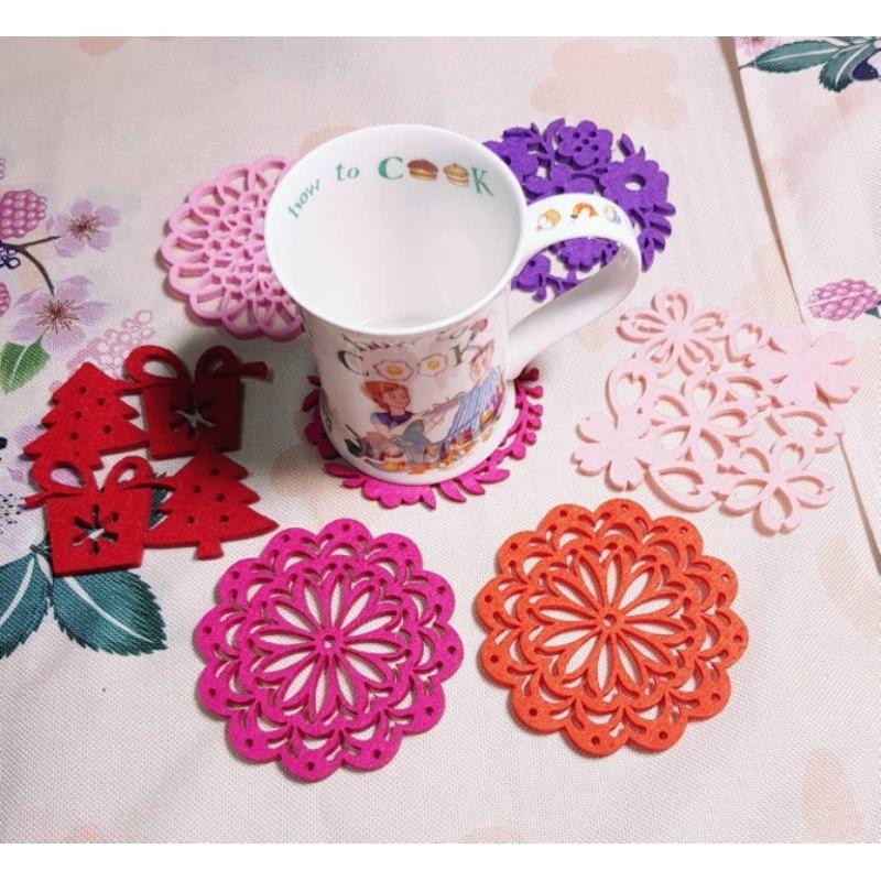 🌈台灣現貨🇹🇼《🥰暖心柑仔店》ins風 櫻花粉 牡丹紅 禮物 繁花吸水杯墊7款 不織布杯墊